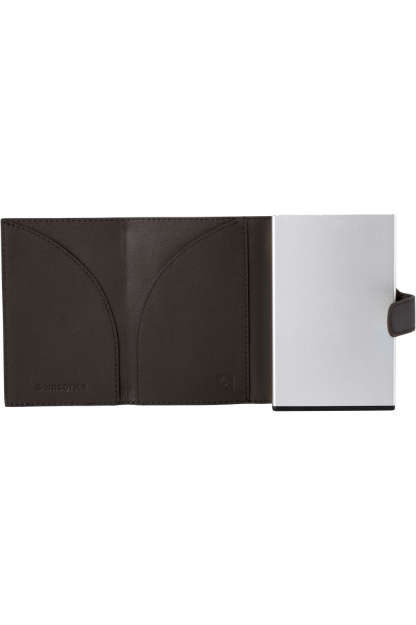 Denne kortholder med læderomslag kan indeholde op til 6 kort + 2 kort i det omsluttende læderomslag samt dine kvitteringer. Den har både RFID og NFC beskyttelse. Disse funktioner vil beskytte dig mod indentitets tyveri og misbrug af dine kort.
