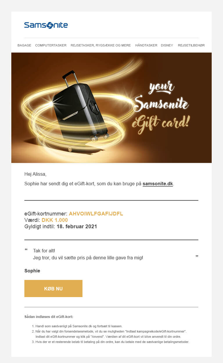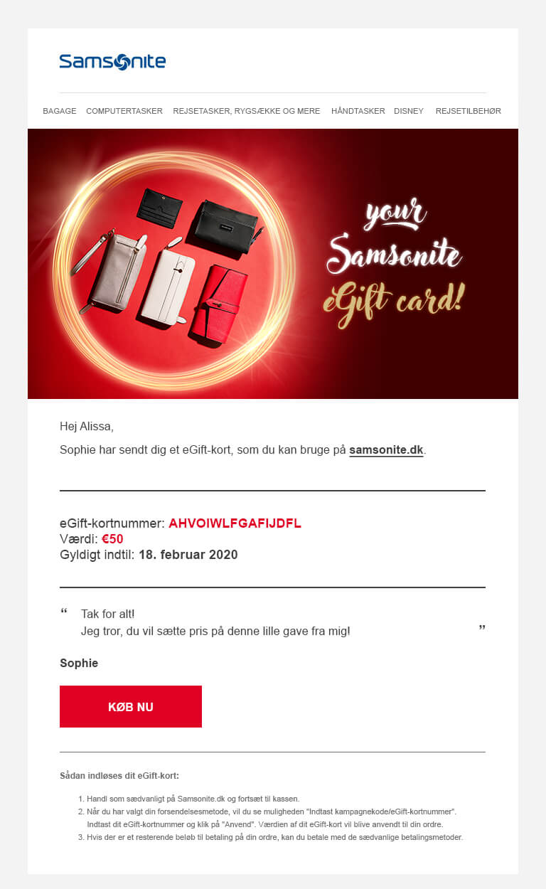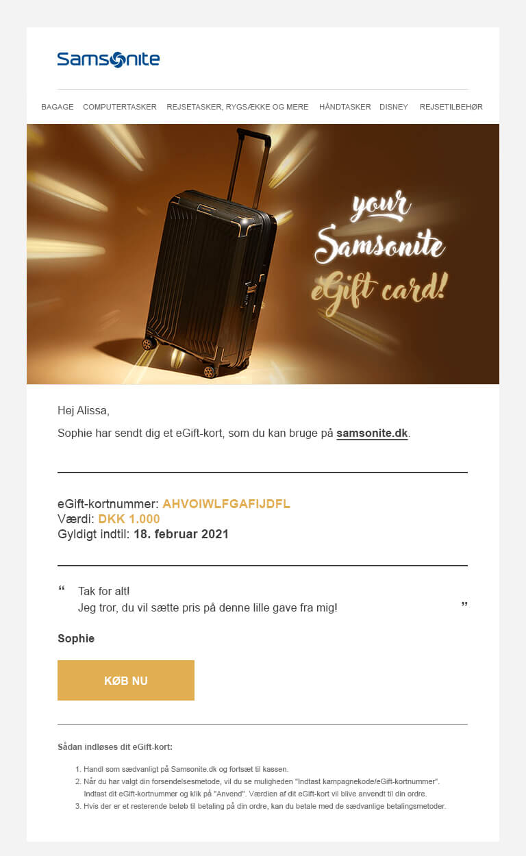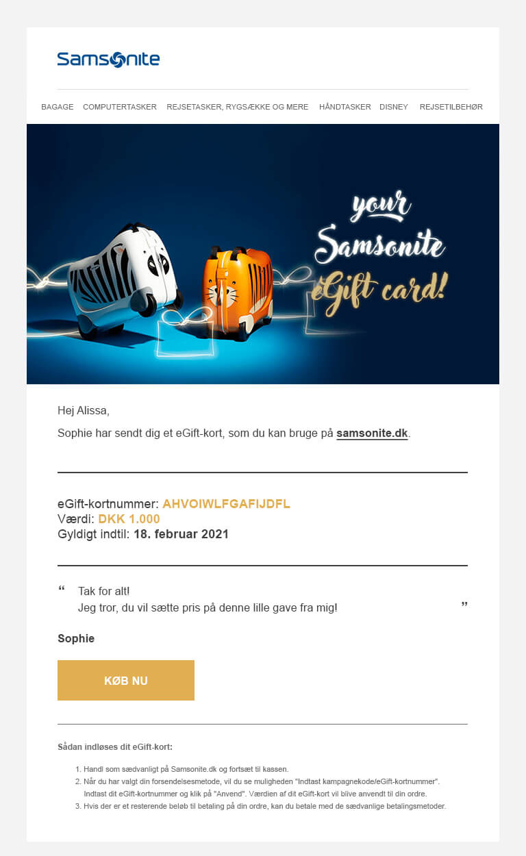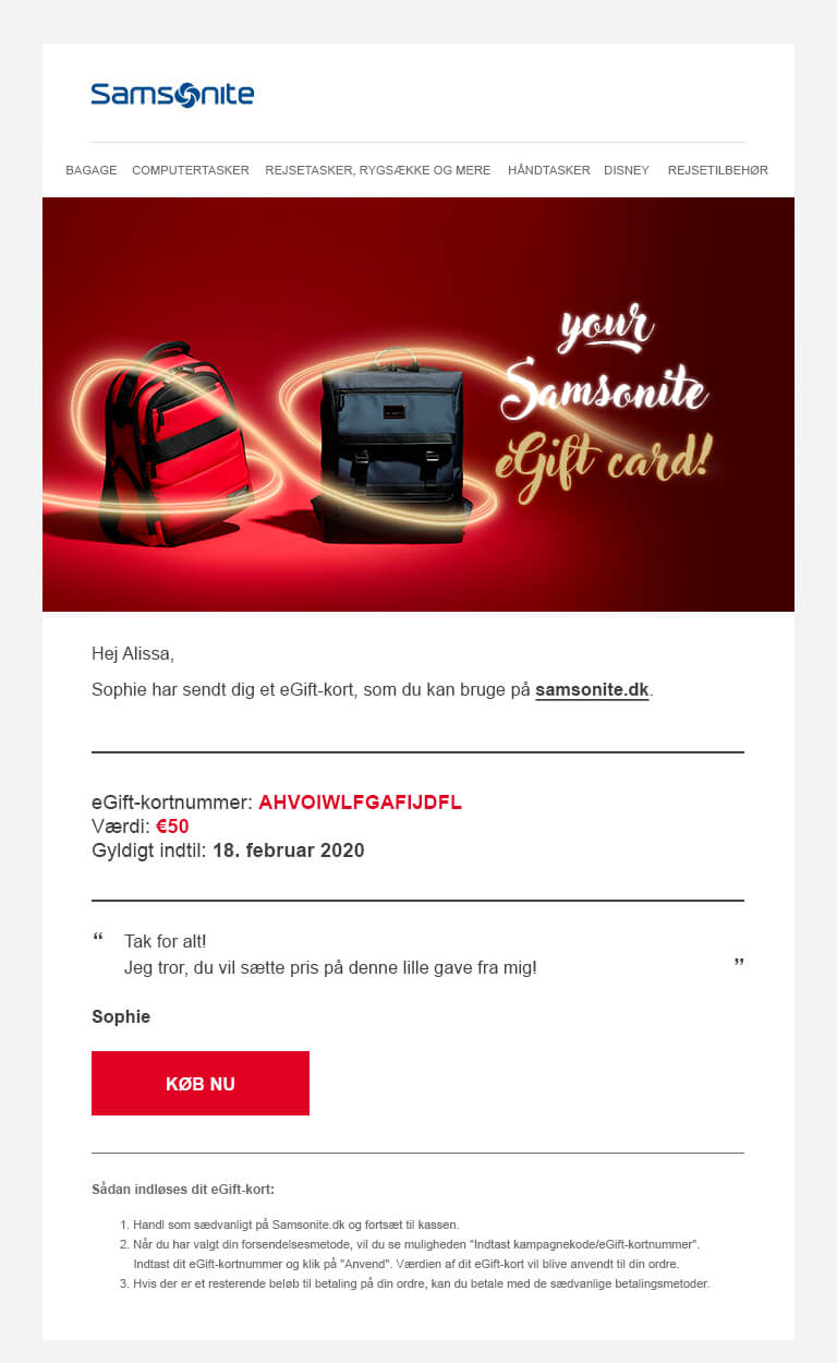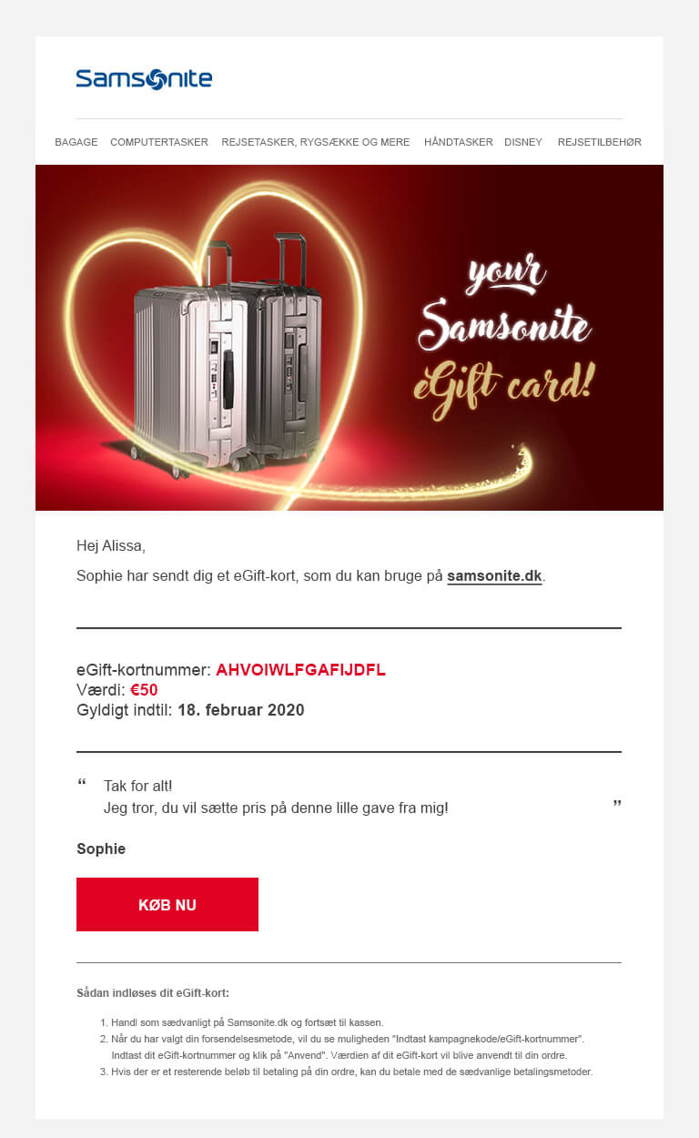 BRUG AF DIT SAMSONITE eGIFT-KORT