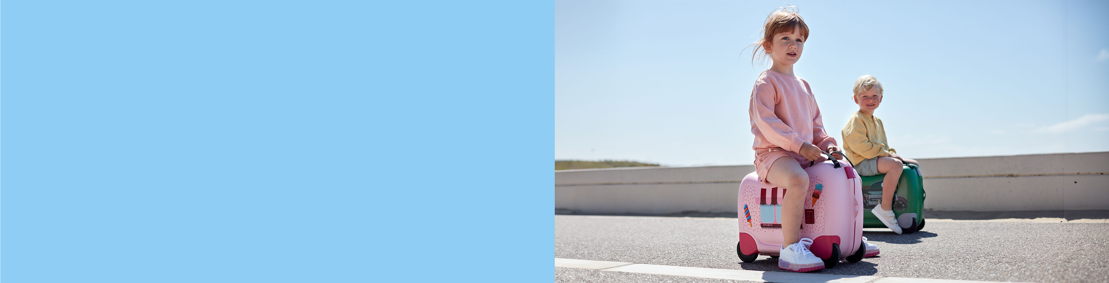 Helt sikkert. Ride-on modeller er perfekte til børn i alderen 3–6 år. De er både sjove og praktiske – og kan bruges som siddeplads i lufthavnen. Vores ride-on kuffertkollektion har sikre hjul og et solidt design.
